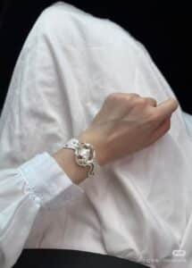 An open cuff design with brushed silver finish – versatile, elegant, and easy to wear.
